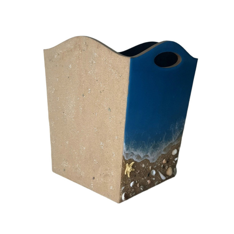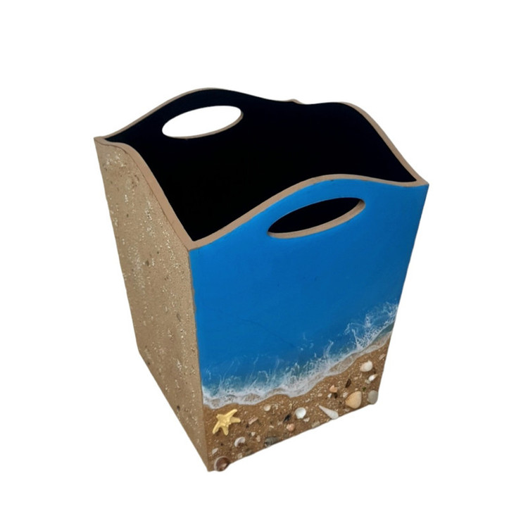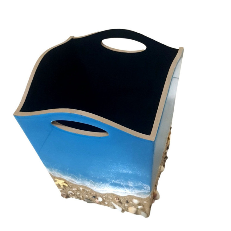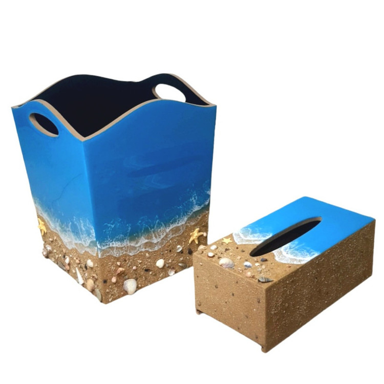 این ست زیبا کاملا منحصر به فرد و خاص طراحی شده دو طرف سطل کارشده با شن و ماسه طبیعی و دو طرف دیگر کار شده با رزین طرح دریا و ساحل طبیعی میباشد. امروزه رزین و طرح دریا بسیار پرطرفدار بوده و حس آرامش و زیبایی به شما القا میکند. این ست زیبا میتواند برای محل های متفاوت مثل خانه ،محل کار،اتاق خواب و... مورد استفاده قرار بگیرد. این محصول تک نسخه بوده و ساخته شده از رزین شفاف، ام دی اف، شن و سنگ ریزه ، ستاره،صدف و گوش ماهی های طبیعی و... میباشد. ابعاد سطل ۲۴.۳۰ ابعاد جادستمال ۱۳.۲۶