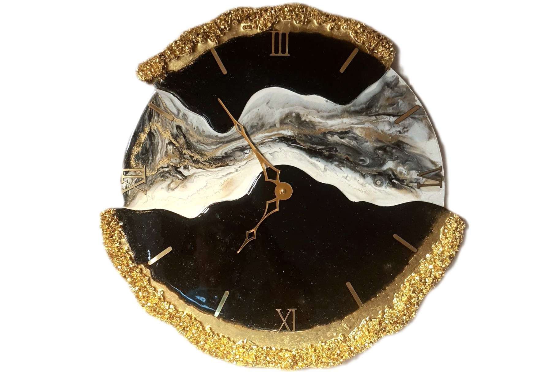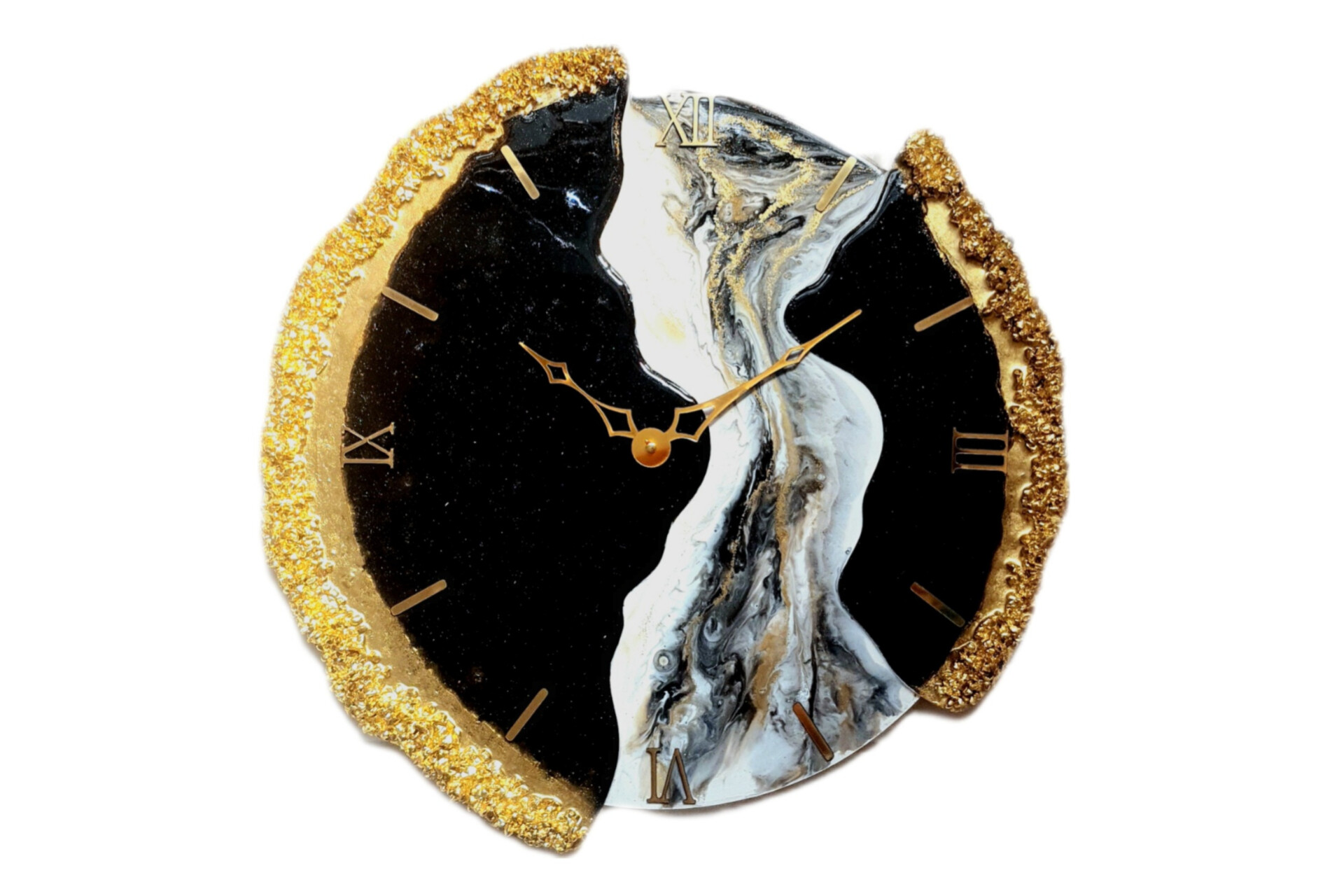 ساعت دیواری رزینی سه تیکه مشکی طلایی