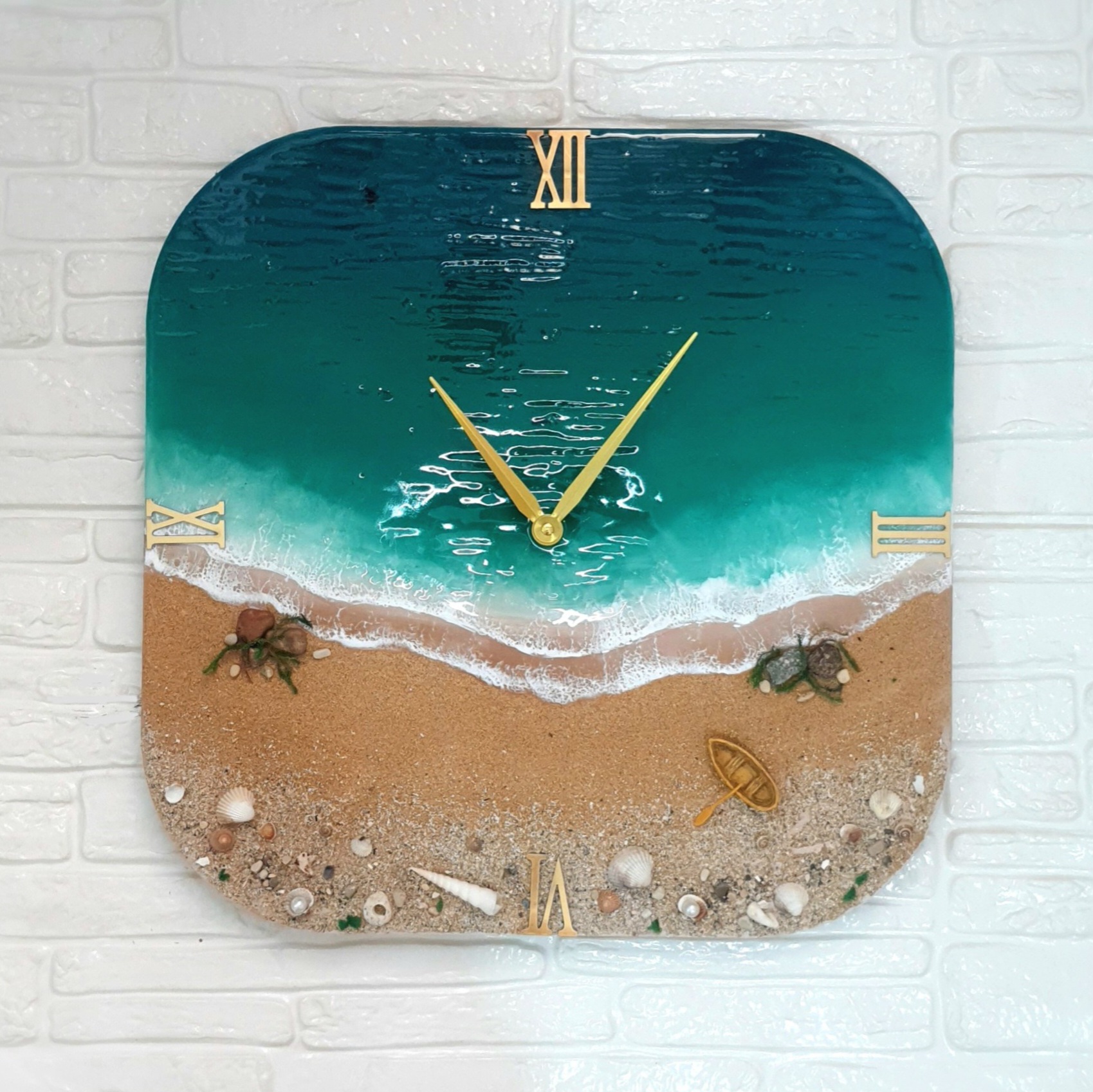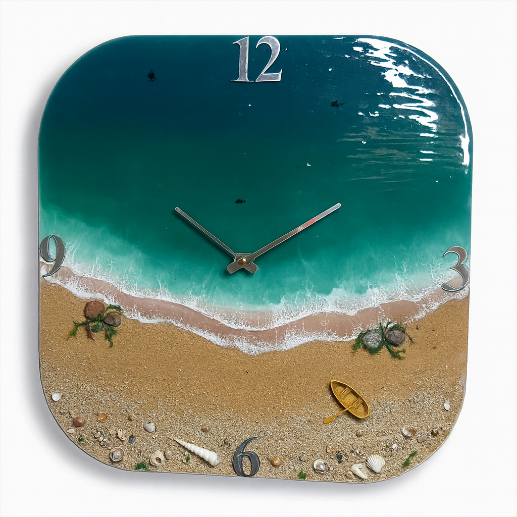ساعت دیواری مدل رزینی طرح دریا و ساحل دستساز