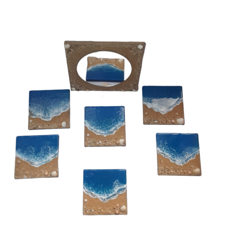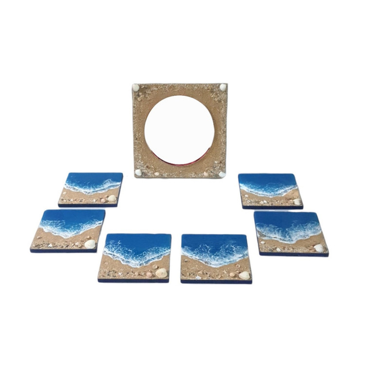 این هفت سین زیبا دستساز بوده و طرح پرطرفدار و جدید دریا و ساحل میباشد که ساخته شده از رزین شفاف ،ام دی اف، شن و صدف های طبیعی. ابعاد هر ظرف مربعی 12 و ابعاد آینه24